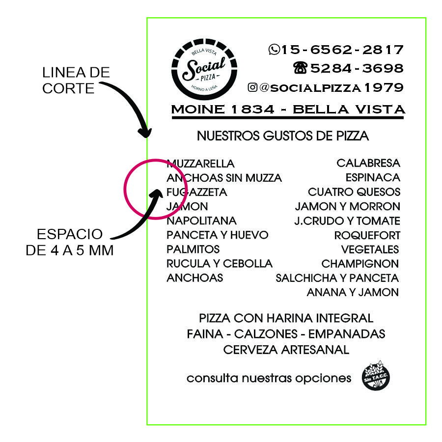 Tener en cuenta de dejar un espacio de 4 a 5 mm en lo posible entre el borde del folleto y el texto