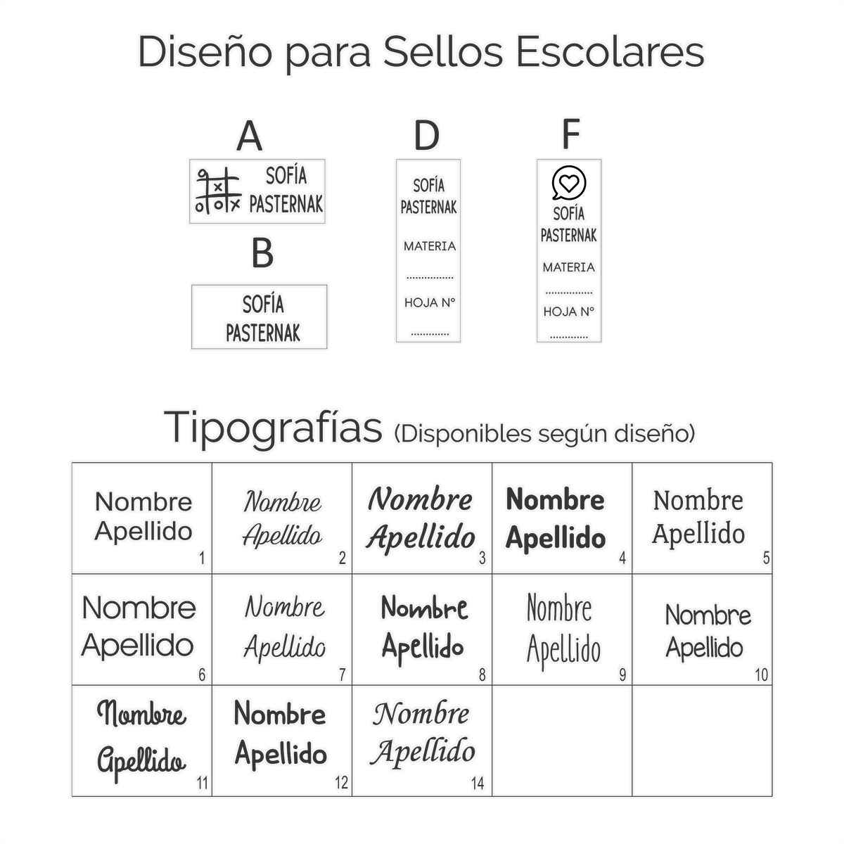 Contamos con varios diseños de sellos escolares ( en forma vertical, ideal para sellar el margen de la hoja por ejemplo).